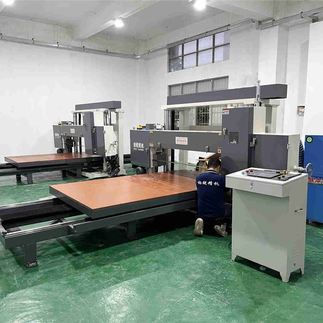 The machine mainly cutting the block foam into slices. It' s adopt fully automatic digital control, setting the number by control box as need cutting thickness and foam density. The workable adopt stainless steel plate runs and with vacuum, it can adding to pressure roller, and in order to prevent cutting foam removing, easy to operate, cutting precision.