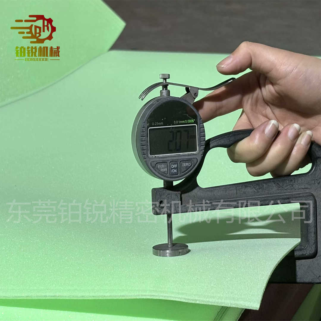 High-precision slicing machines are indispensable for cutting thin slices. This cutting machine is known as a multi-functional high-precision cutting machine. Today, we recommend the sponge high-precision flat cutting machine equipment. Let's see if the high-precision flat cutting machine can handle the challenge of cutting thin slices of XPE extruded board. The 2mm cutting process of the extruded board is very smooth. The finished product is flat without knife marks. The actual measured cutting effect is 2.07mm. The cutting is precise with small errors. The high-precision flat cutting machine has perfectly broken through. Bosses with high requirements and strict standards prefer Dongguan Boli Precision Machinery!