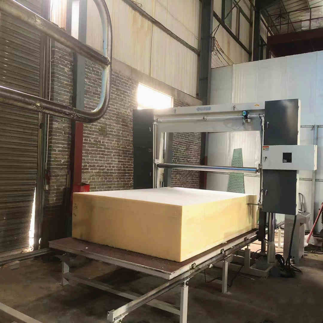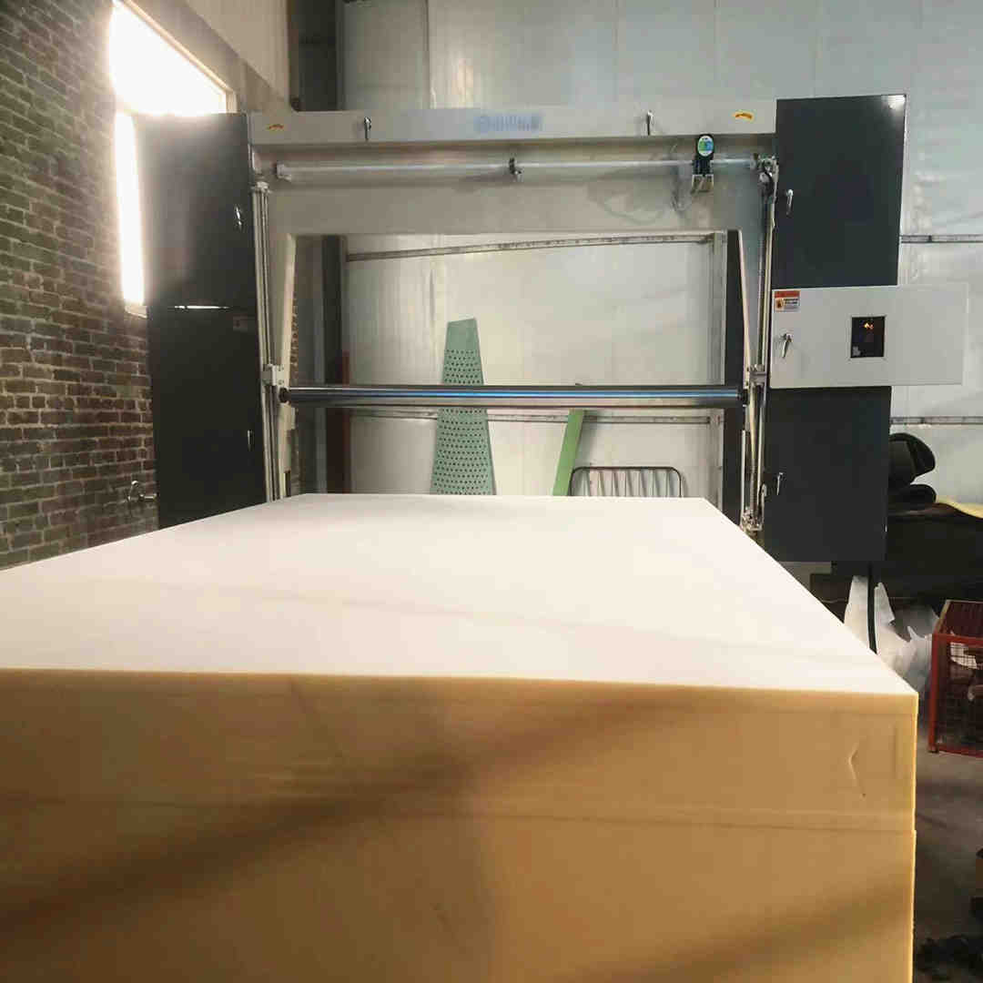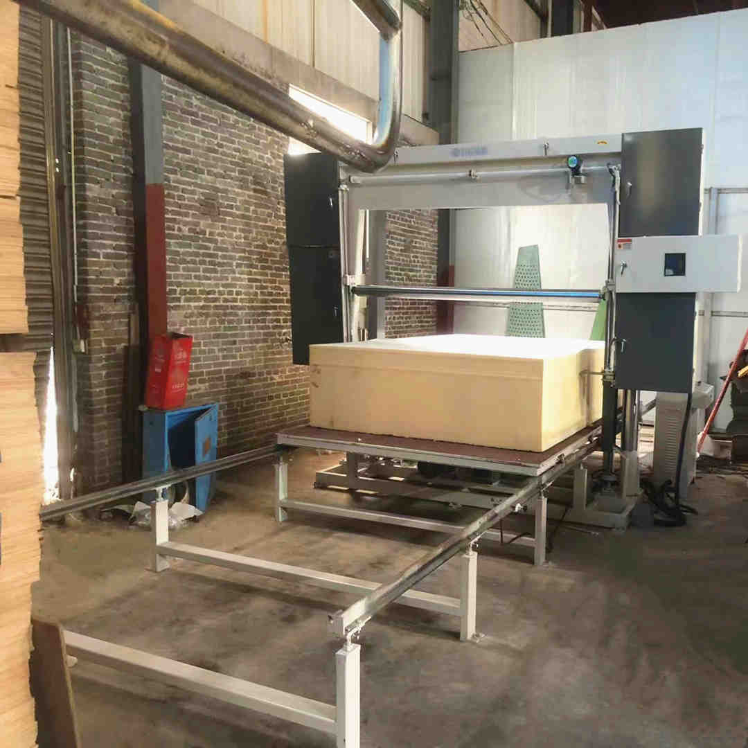 The machine is mainly used for cutting the block foam into slices. The workable is fully automatic digital control, setting the number by control box as need cutting thickness. It's with a pressure roller, to preventcutting foam moving, easy to operate, cutting precision ( workable also can choose with the vacuum system).