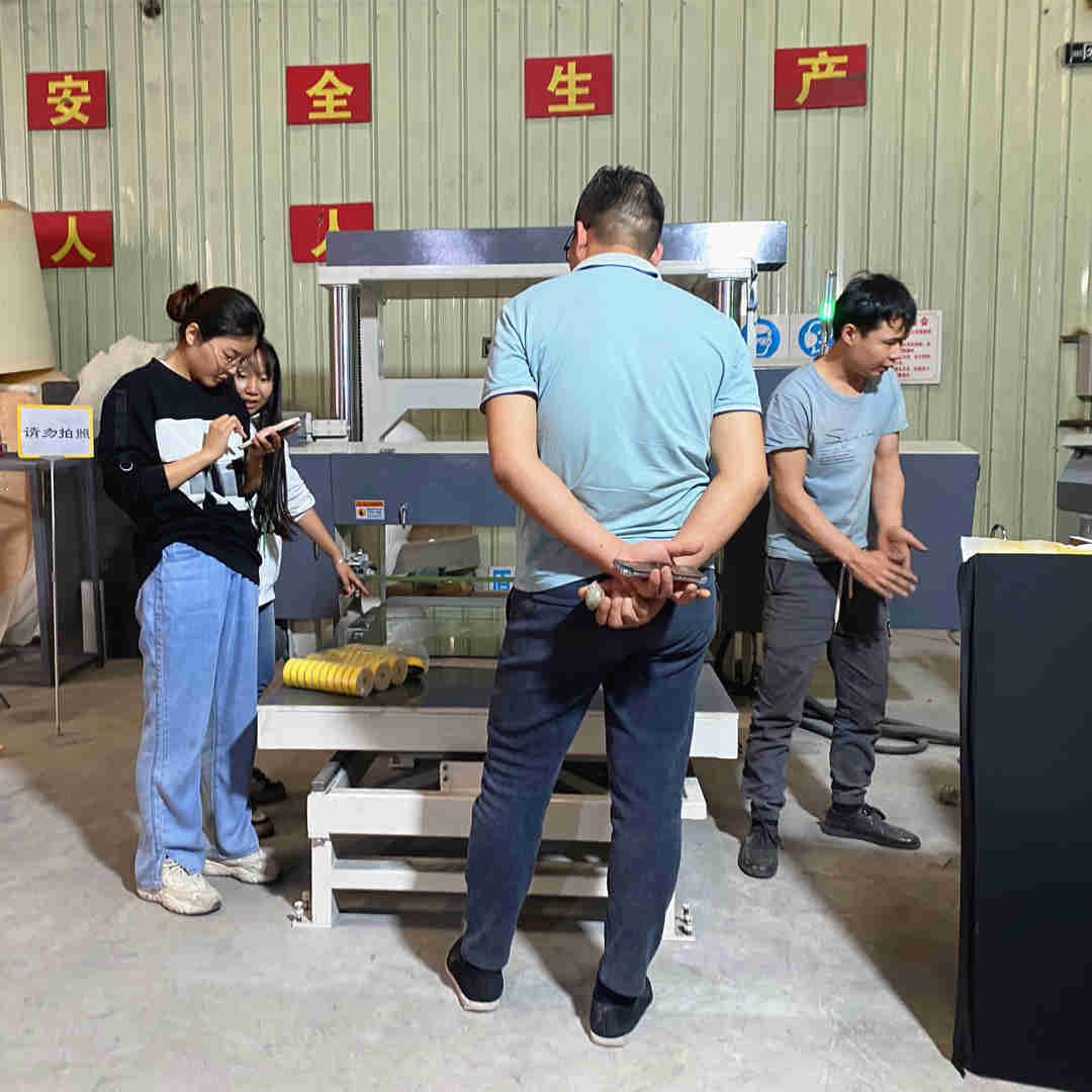 The machine mainly cutting the block foam into slices. It' s adopt fully automatic digital control, setting the number by control box as need cutting thickness and foam density. The workable adopt stainless steel plate runs and with vacuum, it can adding to pressure roller, and in order to prevent cutting foam removing, easy to operate, cutting precisio